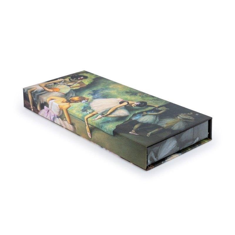 Este set incluye notas en tres tamaños: pequeñas rectangulares para marcadores de página, medianas para textos breves y grandes cuadradas tipo Post-it para notas más extensas. Su cierre magnético garantiza que todas las piezas se mantengan seguras y ordenadas, facilitando su transporte sin riesgo de pérdida. El diseño versátil es perfecto para uso en casa, escuela u oficina, funcionando como marcapáginas, planificador o calendario. Inspirado en el cuadro "Bailarinas" de Ramon Ribas i Rius, este set es un regalo perfecto para amantes del arte y la organización. Descubre cómo este accesorio puede mejorar tu productividad y estilo personal.