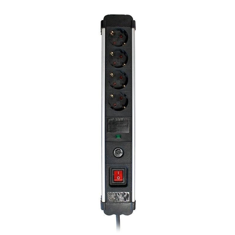Comodidad y protección avanzadas. Esta regleta con 4 tomas y estructura de aluminio proporciona una solución robusta y eficiente para la conexión de dispositivos electrónicos y eléctricos, ideal tanto para entornos domésticos como profesionales que valoran la seguridad eléctrica.