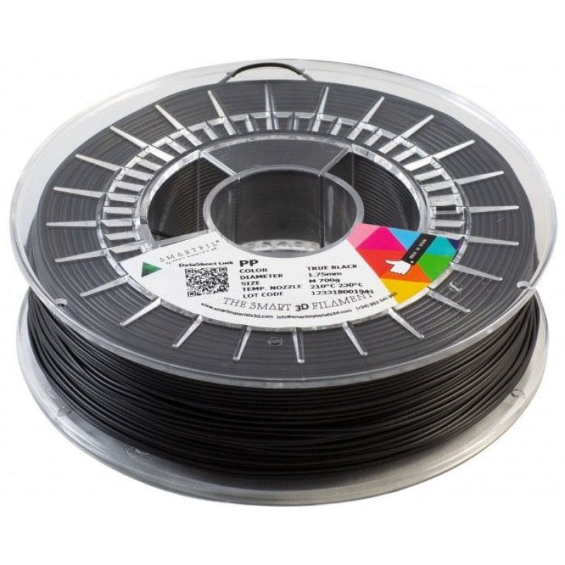 Smartfil PP es un filamento de Polipropileno aditivado especialmente para reducir su contracción durante el proceso de impresión, gracias a su baja densidad (inferior a 1 g/cm) y a su gran resistencia frente al impacto, es un material muy recomendado para aplicaciones donde el peso sea un factor determinante o donde se requiera una protección adicional frente al impacto.