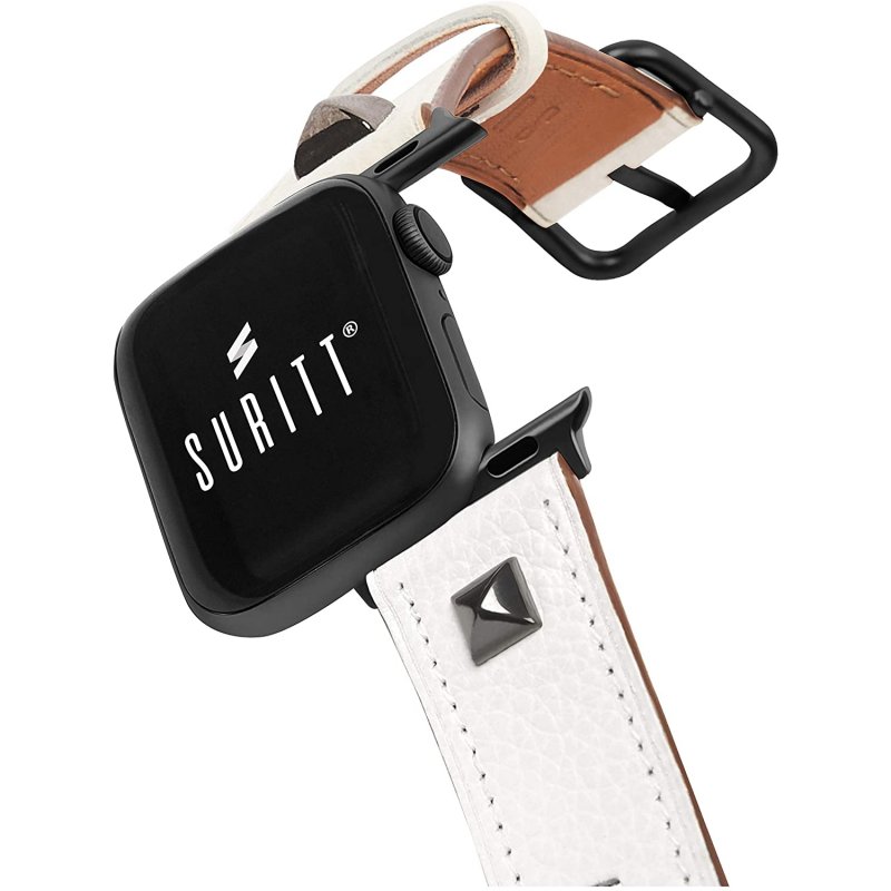Suritt Oslo Correa de Piel/Cuero Blanca con Adaptadores Negros para Apple Watch 38/40mm