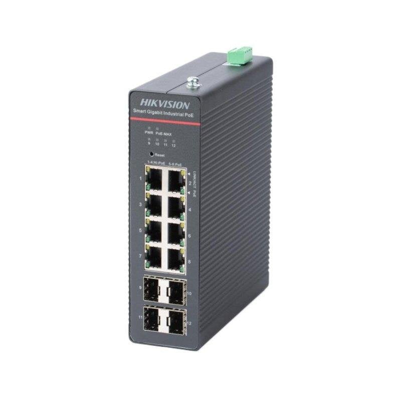 Switch Hikvision DS-3T1512HP-SI-8P4F 8 Puertos Gigabit PoE y 4 SFP Gestión Avanzada Industrial