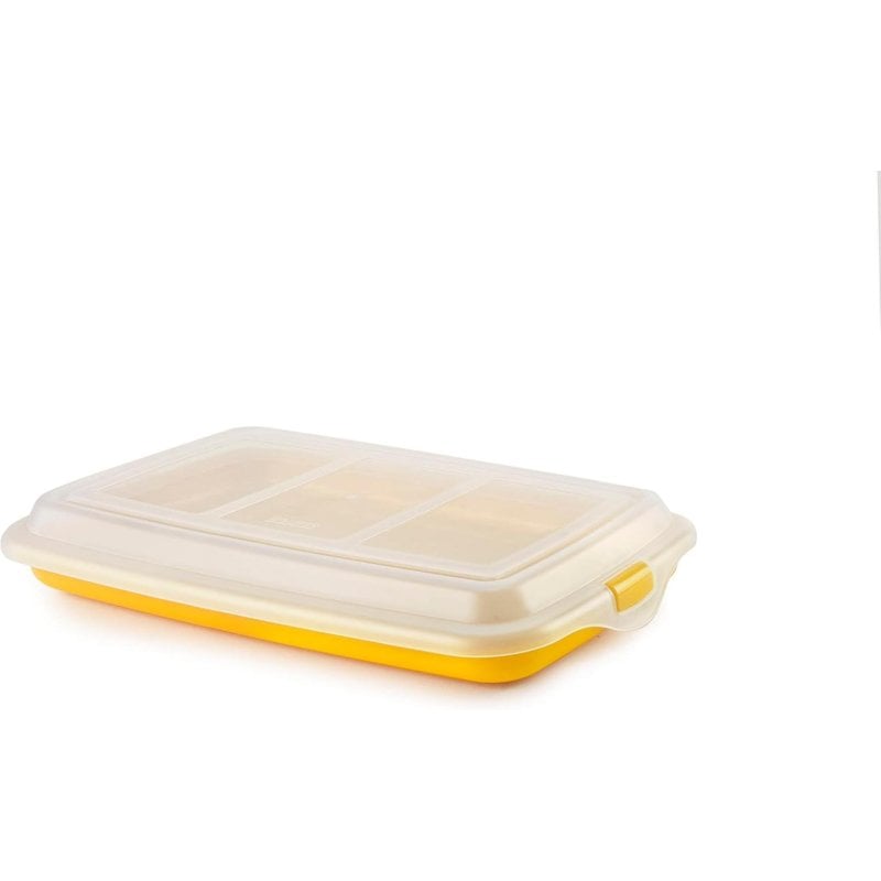 Eficiencia en la organización. Sus dimensiones de 24,8 x 14,4 x 3,3 cm –más finas que otros recipientes genéricos del mercado– permiten apilar varios tapers para una gestión eficiente del espacio en refrigeradores profesionales y domésticos, respondiendo a las necesidades de técnicos en alimentación y responsables de almacenes de hostelería.