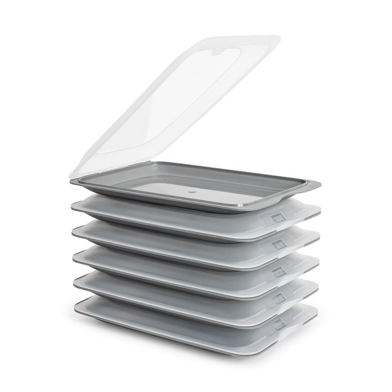 Cuentan con una tapa extraíble que te permite usar el recipiente también como bandeja para servir. De ésta manera, únicamente tendrás que sacarlo de la nevera, ponerlo en la mesa sin necesidad de usar otro plato, y una vez terminado, volver a guardarlo en la nevera con la tapa puesta.