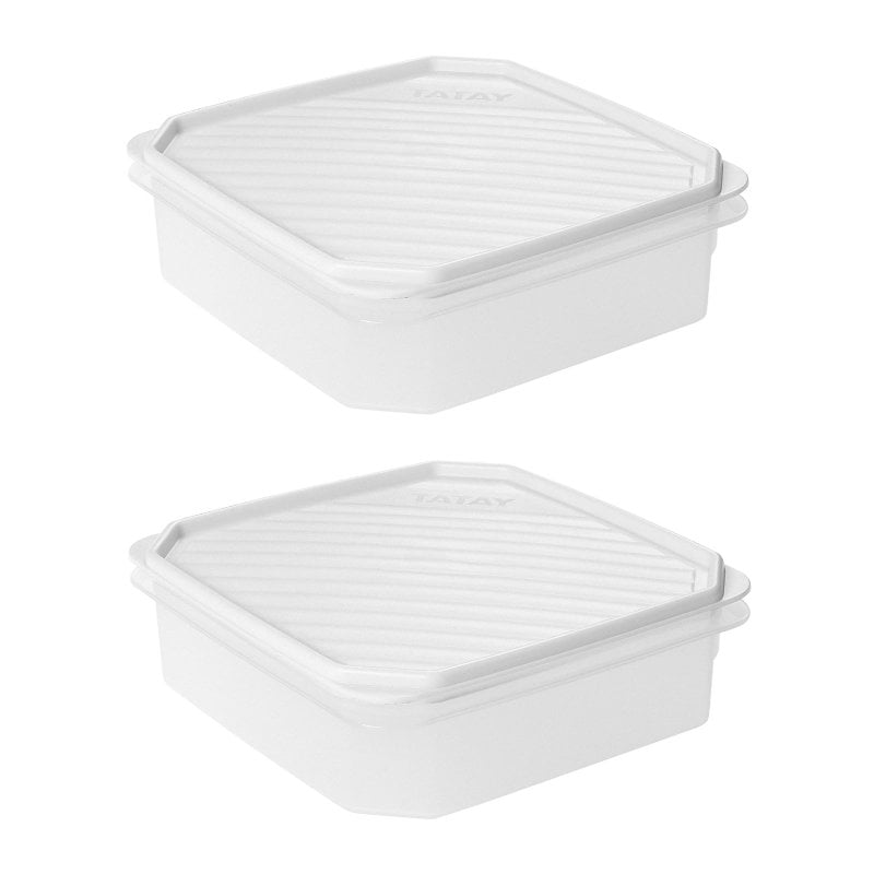 Tatay Top Flex - Juego De 2 Recipientes Cuadrados Planos 1.3l Con Cierre A Presión. Blanco