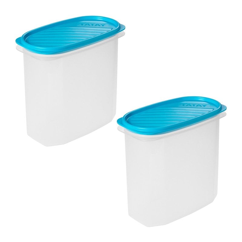 Tatay Top Flex - Juego De 2 Recipientes Ovalados Altos 2l Con Cierre A Presión. Azul