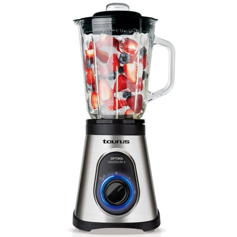 Prepara tus recetas con la batidora de vaso Optima Magnum 6 y elige la textura que deseas conseguir gracias a sus 3 velocidades y función pulse. No habrá alimento que se le resita, su jarra de cristal, su potencia de 600W y sus cuchillas de alto rendimiento en acero inoxidable pueden con todo. Además, gracias a las cuchillas de 6 filos conseguirás texturas homogéneas y suaves rápidamente. Optima Magnum 6 también incluye función pica hielo para ahorrarte tiempo y dinero. Crea tus granizados, smoothies o batidos fácilmente con Optima Magnum 6 y empieza a disfrutar de un mundo de sabores.
