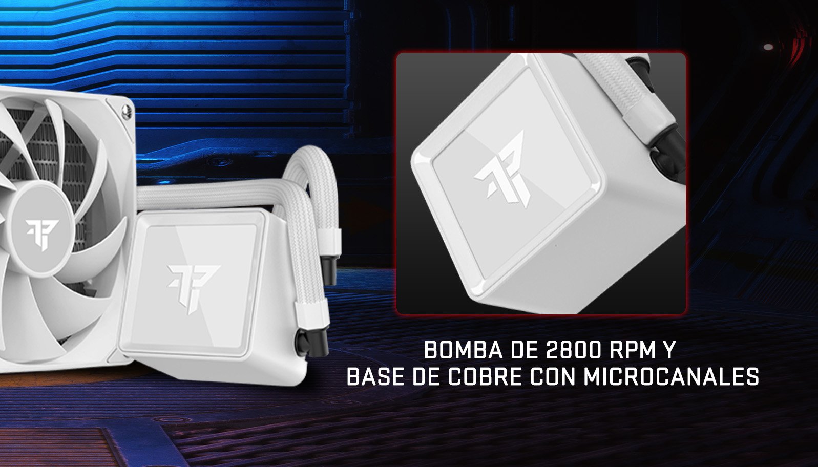 - Su bomba de alto rendimiento a 2800 RPM, combinada con una base de cobre con micro canales de 0.1MM, garantiza una transferencia de calor eficiente y constante incluso en los escenarios más exigentes.