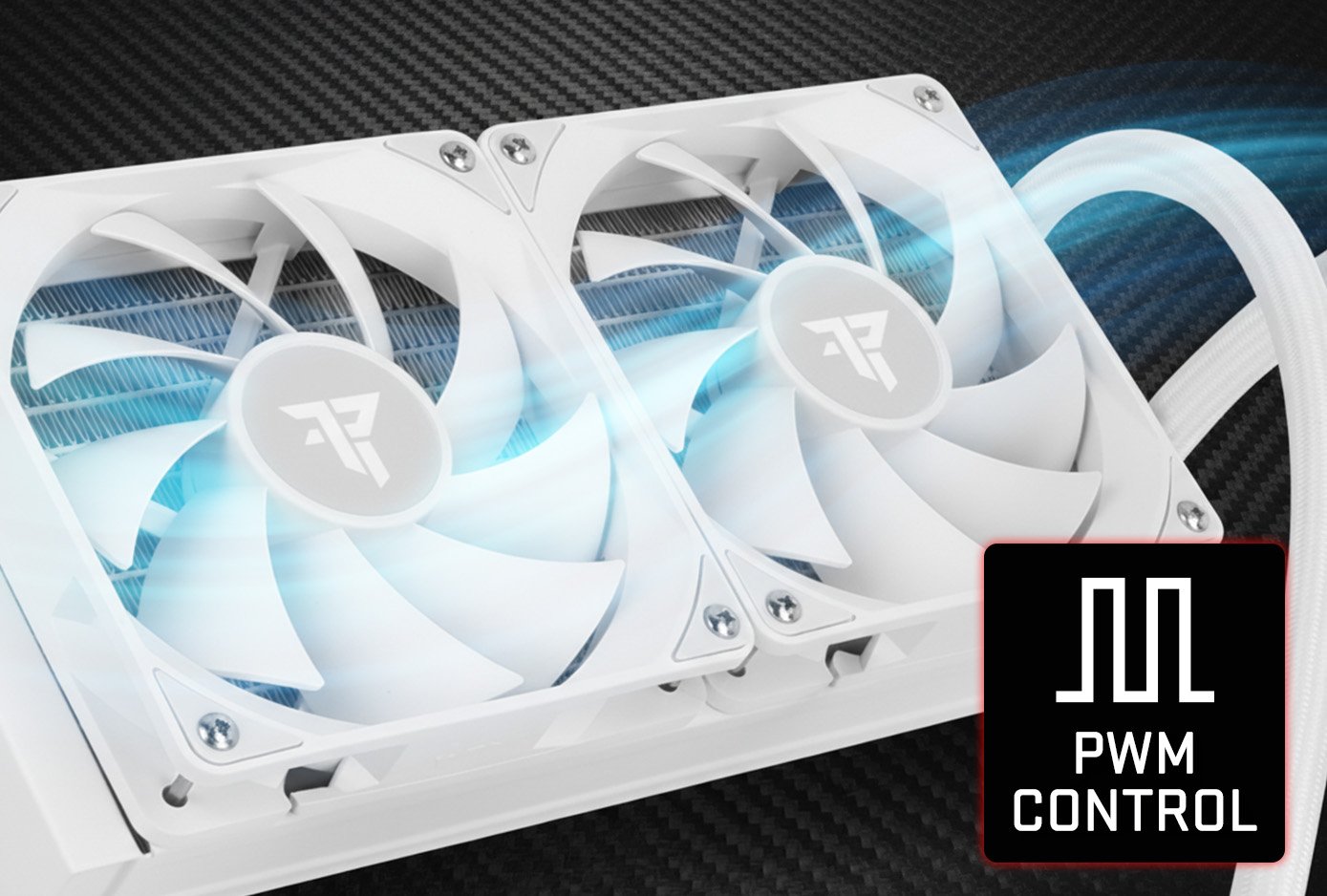 - El sistema se completa con ventiladores PWM de 120 mm, capaces de ofrecer un flujo de aire de hasta 73.7 CFM manteniendo un nivel sonoro contenido de ?30 dBA, logrando un equilibrio óptimo entre potencia y silencio.