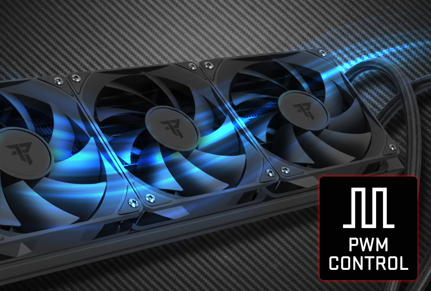 - El sistema se completa con ventiladores PWM de 120 mm, capaces de ofrecer un flujo de aire de hasta 73.7 CFM manteniendo un nivel sonoro contenido de ?30 dBA, logrando un equilibrio óptimo entre potencia y silencio.