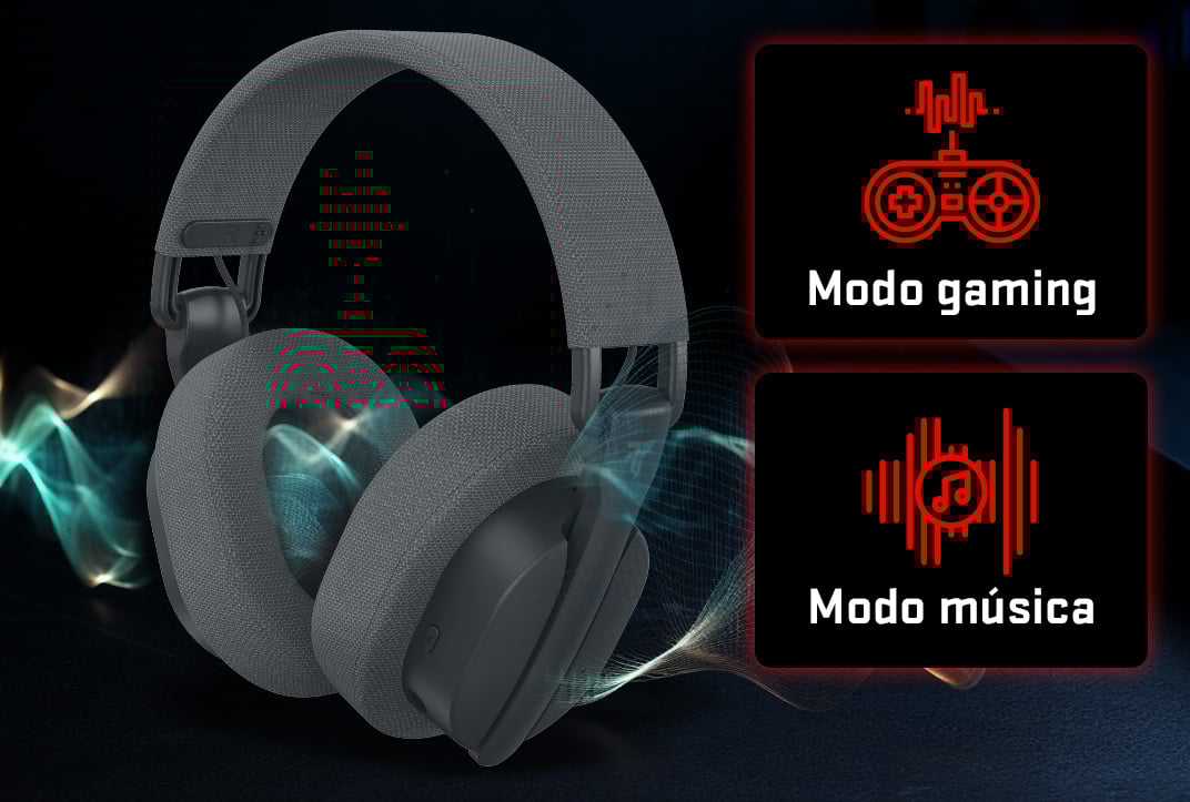 Modo gaming con sonido claro y potente para que no se te escape nada. Modo música para subir el volumen y desconectar. Cambia de perfil al instante y sin complicaciones