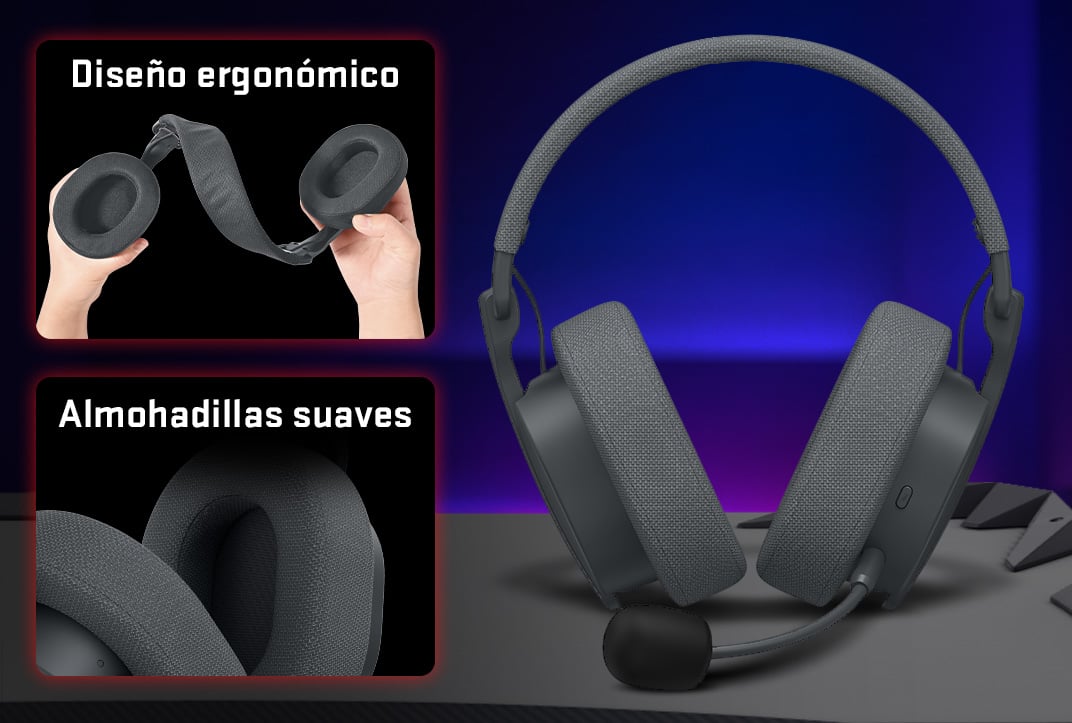 Peso ligero, diseño flexible y almohadillas suaves. Todo pensado para ofrecer comodidad total en sesiones gaming prolongadas o uso diario sin presión