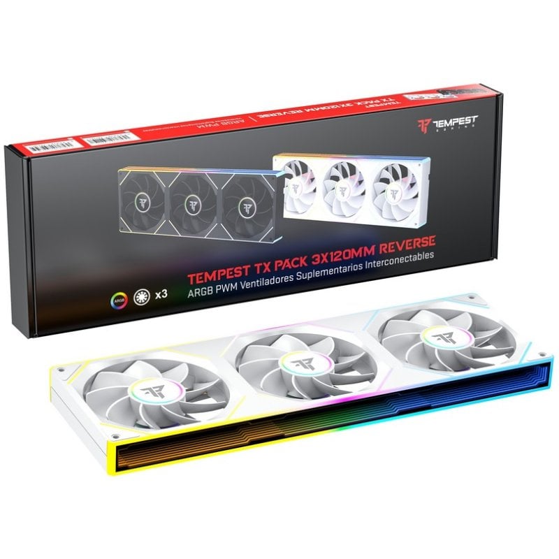Tempest TX Pack 3x 120mm ARGB PWM Ventiladores Reversos Suplementarios Interconectables Blanco