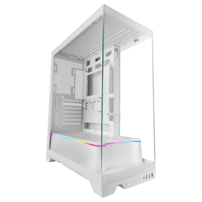 Visión envolvente y diseño premium. Experimenta una perspectiva única gracias a sus tres paneles de cristal templado continuo sin marcos, que permiten admirar tus componentes desde cualquier ángulo y disfrutar de un espectáculo visual ARGB personalizable. Saca partido a tu hardware con una presentación pulida y moderna.