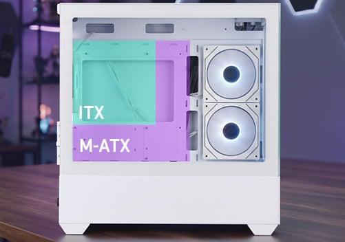 Compatible con placas M-ATX e ITX, brinda flexibilidad en componentes, refrigeración eficiente y fácil montaje