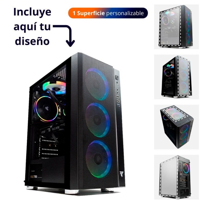 - Ventiladores incluidos: Ventiladores de 120mm x 3 ARGB Frontal, Ventilador de 120mm x 1 ARGB Trasera