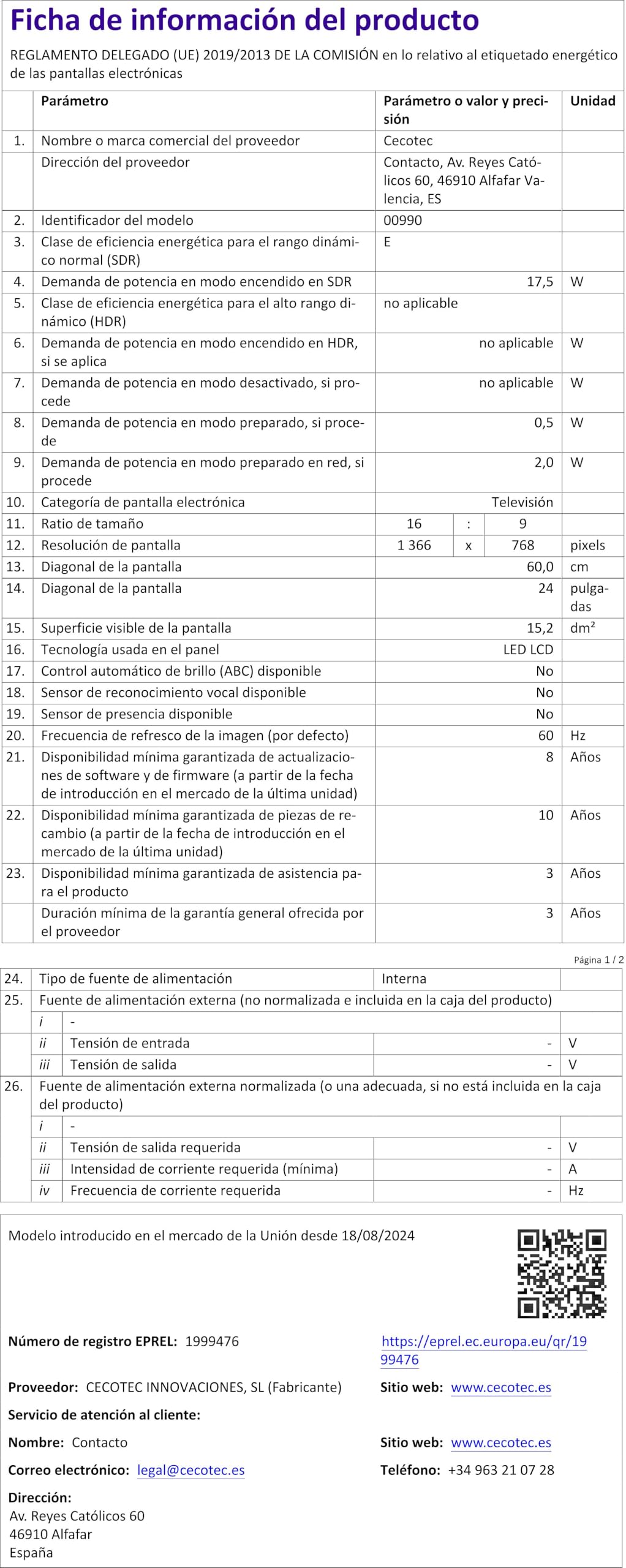Es totalmente compatible con soportes VESA para pared. El paquete incluye un mando a distancia con pilas AAA y manual de instrucciones para una puesta en marcha inmediata.