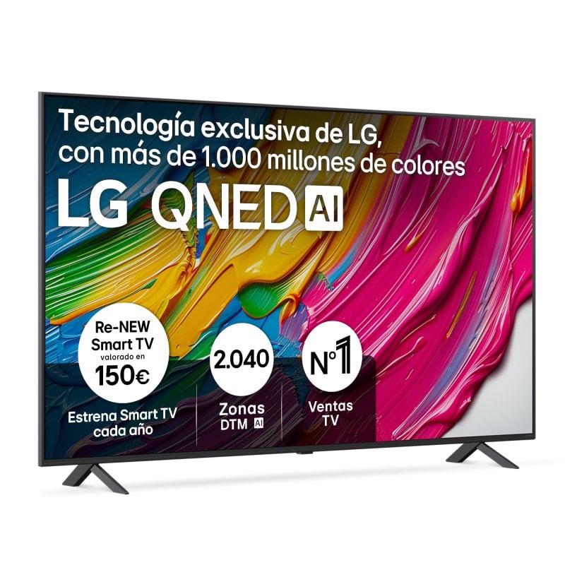 La tecnología QNED combina Quantum Dot y NanoCell para reproducir más de 1 000 millones de colores con mayor precisión, mejorando el contraste zona a zona para negros profundos y brillo homogéneo en toda la pantalla.