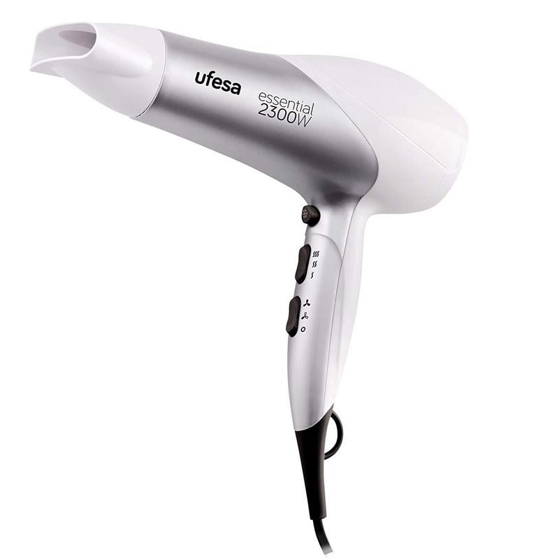 Secador de pelo Ufesa SC8316 Essential con 2300 W, selector de temperatura y velocidad. Incluye accesorios de concentrador y difusor.