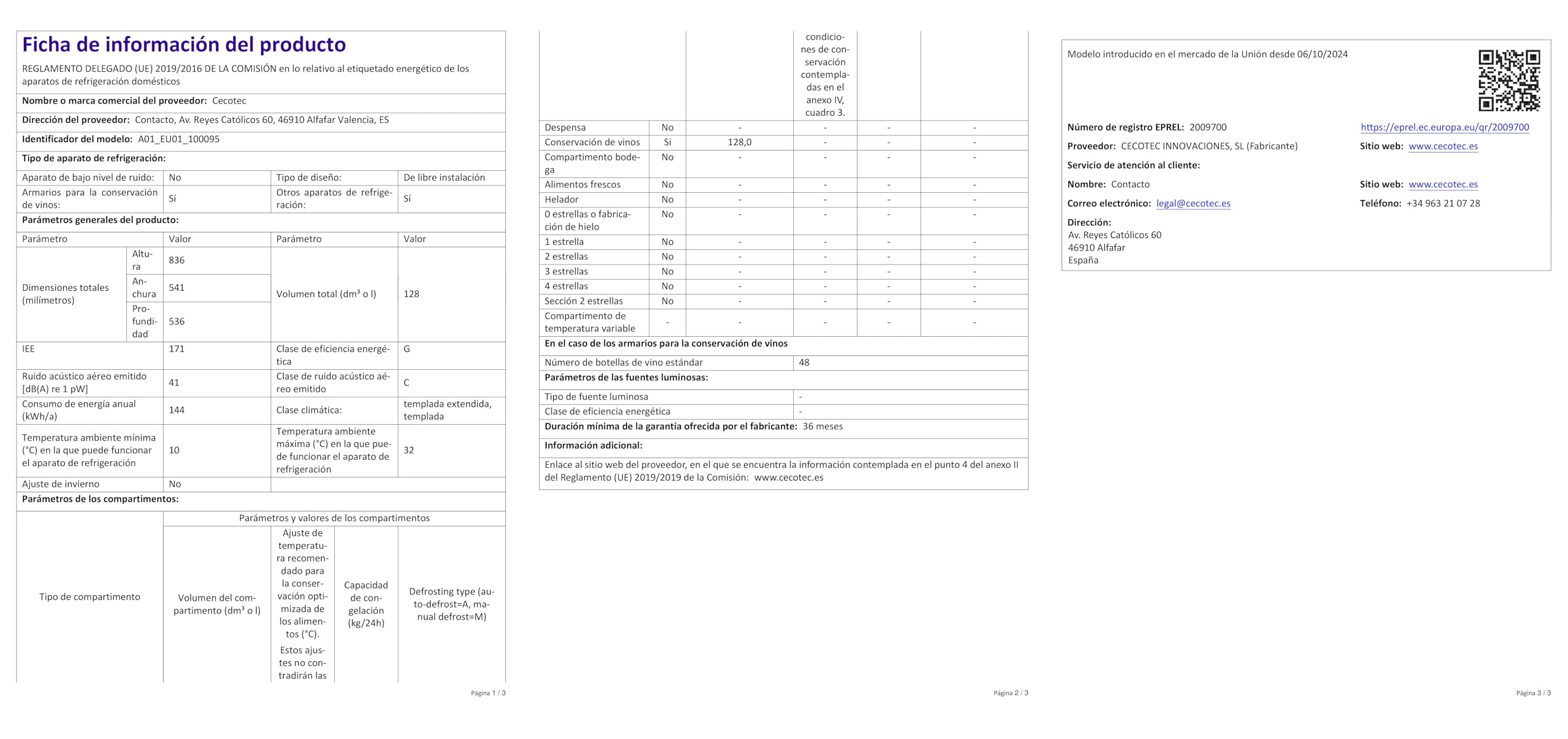 Especificaciones Vinoteca Cecotec Grand Sommelier